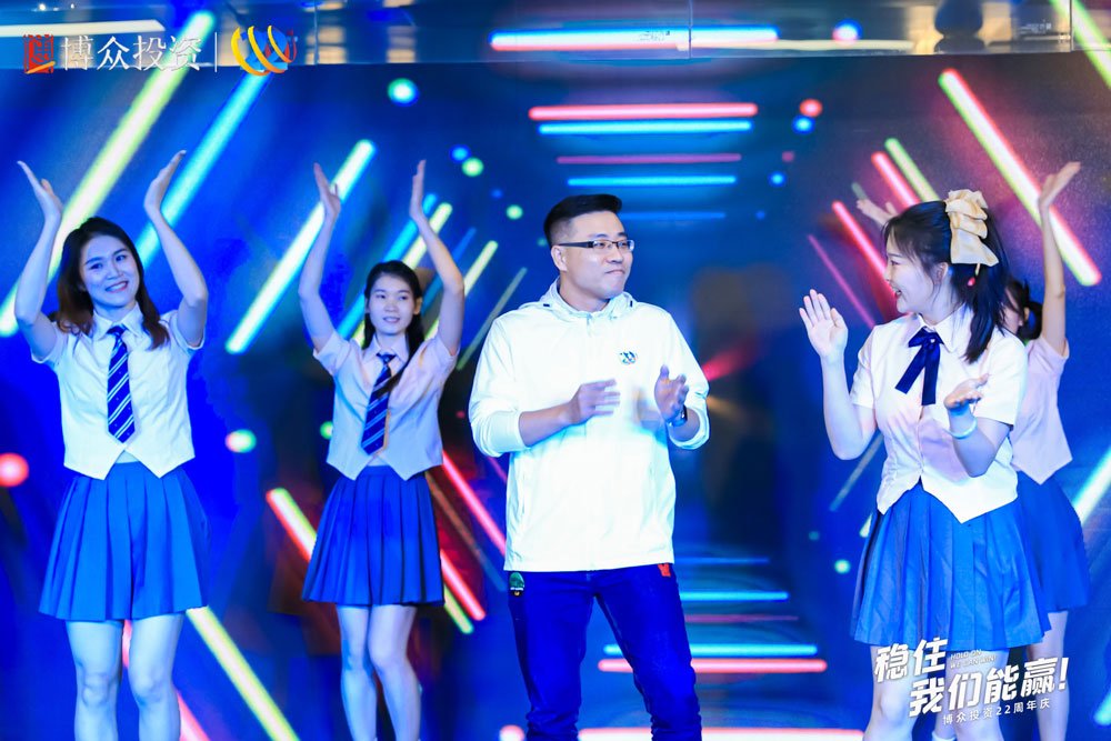 由廣州睿陽廣告有限公司策劃并執(zhí)行的博眾投資22周年慶典于2022年7月12日在廣州辦公區(qū)天德廣場舉辦,活動以“穩(wěn)住,我們能贏!”為主題,參與人數(shù)為850人左右。