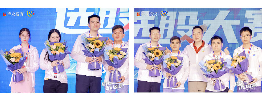 下一項(xiàng)則是選股大賽頒獎儀式,首先頒發(fā)的是銅獎獲得者,他們是陳紅董、梁世昌、黃建強(qiáng)、容偉彪、宋文皓、韋蘭忠、程琪、明振友、鄒小翠,由易米的劉總為9為獲獎?wù)哌M(jìn)行頒獎以及合影留念。緊接著頒發(fā)銀牌獲獎?wù)撸麄兪牵宏悹N、陳威、張偉秋、勞志炳、謝俊。繼續(xù)由易米的劉總為4位獲獎?wù)哌M(jìn)行頒獎以及合影留念。
