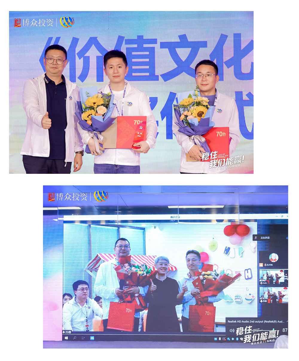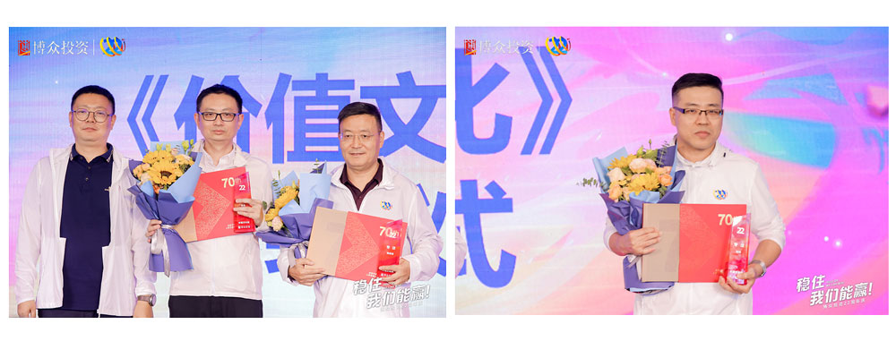 下一項(xiàng)慶典議程是博眾文化頒獎儀式,首先頒發(fā)的是“以奮斗者為本”獎。榮獲此項(xiàng)榮譽(yù)的團(tuán)隊(duì),是由朱艷湘率領(lǐng)的行政部。緊接著,頒發(fā)的是“本分”獎,榮獲此項(xiàng)殊榮的團(tuán)隊(duì)是柯炎敏率領(lǐng)的合規(guī)部。均由鄒總為獲獎團(tuán)隊(duì)頒發(fā)榮譽(yù)并進(jìn)行合影留念。