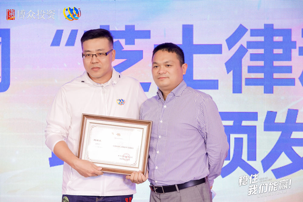 頒發(fā)博眾文化價值獎——個人獎。榮獲本屆“專注獎”的是來自博眾的劉冰老師、陳宗寶老師以及林杰老師。榮獲本屆“創(chuàng)新”獎的是陳細(xì)幫、張銘亮兩位博眾創(chuàng)新先鋒。最后一個獎項(xiàng)是“以客戶為中心”獎,獲得該項(xiàng)殊榮的,是來自博眾的孫文勝老師與劉開斌老師。均由廣東電視臺經(jīng)濟(jì)科教頻道副總經(jīng)理侯金龍先生為以上獲獎老師進(jìn)行頒獎并合影留念。