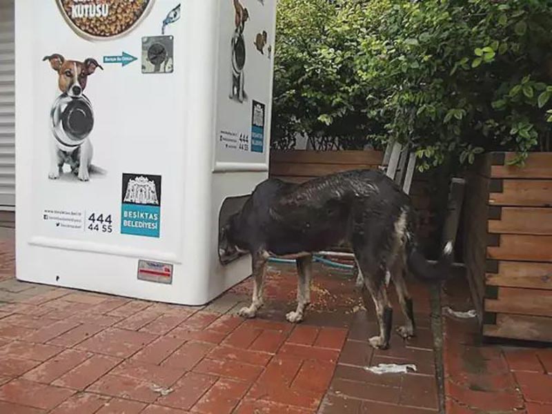 2012年,土耳其動(dòng)物愛護(hù)組織Pugedon將目光投向了流浪小動(dòng)物們,他們?cè)O(shè)計(jì)出一款獨(dú)特的飲料瓶回收器。這款設(shè)備看起來和普通的售賣機(jī)沒有什么區(qū)別,但其別出心裁之處在于,只要大家將飲料瓶投入其中,機(jī)器就會(huì)放出飼料,流浪動(dòng)物們就可以飽餐一頓啦。這種機(jī)器有兩個(gè)好處,一是節(jié)省人力回收廢料;二是能夠減少流浪動(dòng)物隨便吃受污染的食物而出現(xiàn)的健康問題。